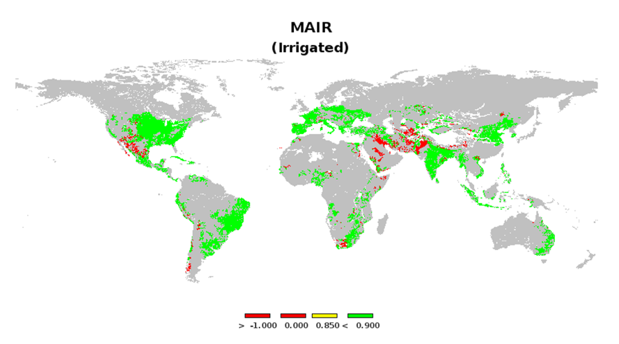 This dataset is a map of irrigated and rainfed maize areas; it serves the purposes of illustrative stress testing, which is a specific task in this project. It represents the output of the maize cultivated area minimization problem when maize is isolated from other crops.