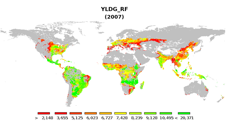 Maize yield potential (rainfed) as estimated by the EPIC model for the year 2007.